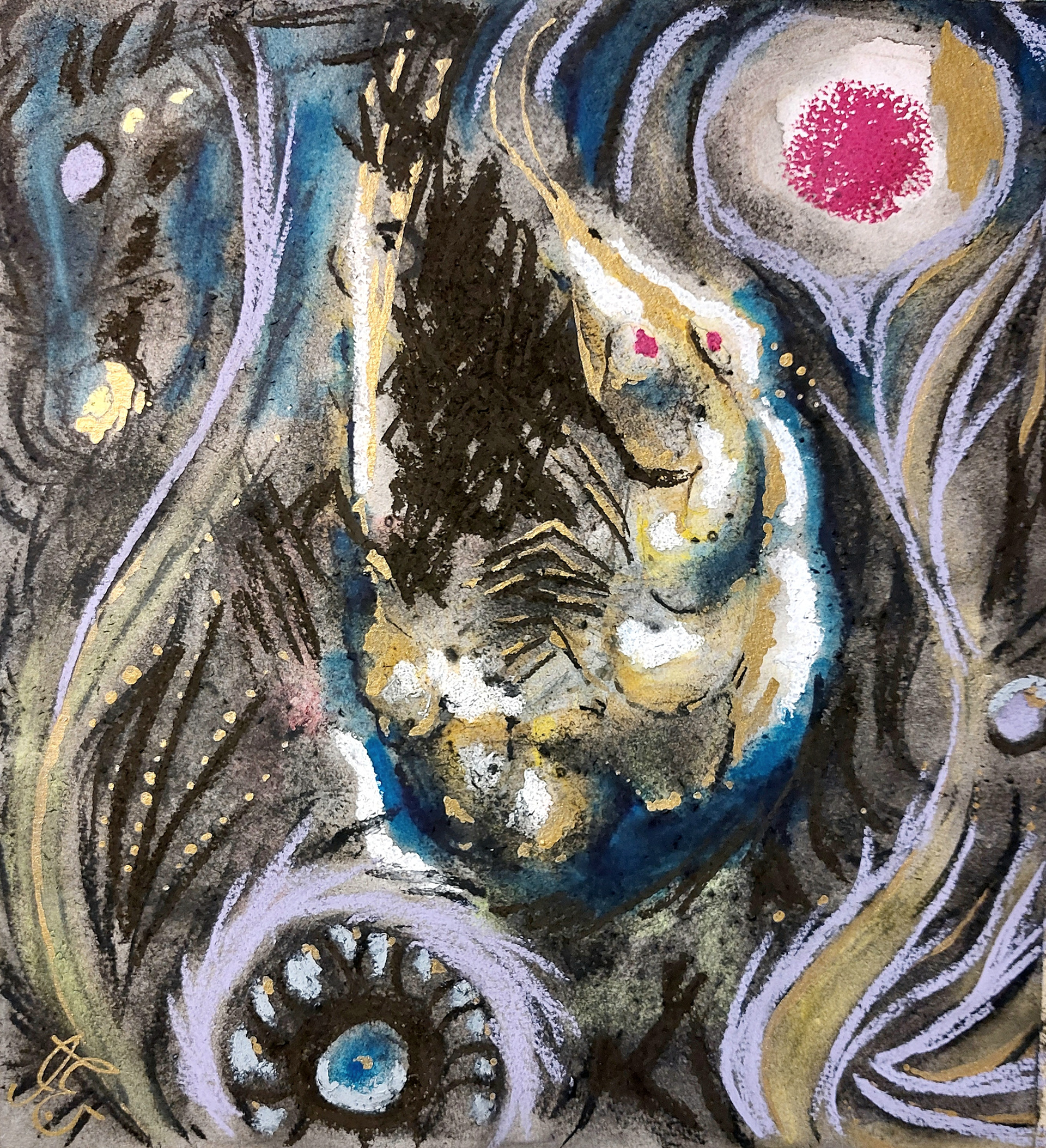 Jag har överraskande för mig själv börjat vaska i arketypiska uttrycksformer som jag arbetade med under 80 och 90- talet. Antagligen därför att det känns utvecklingsbart i förhållande till var jag befinner mig nu i livet. Behovet av summeringar genom mina bilder har fått en ny dimension och blivit viktigare och mer brådskande! - Björn Krestesen
