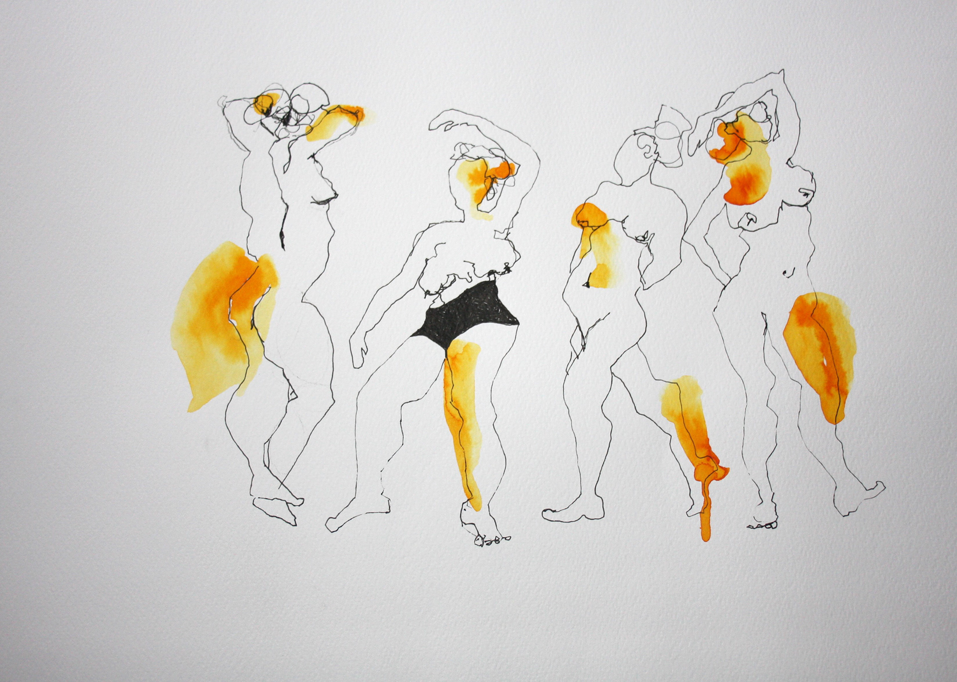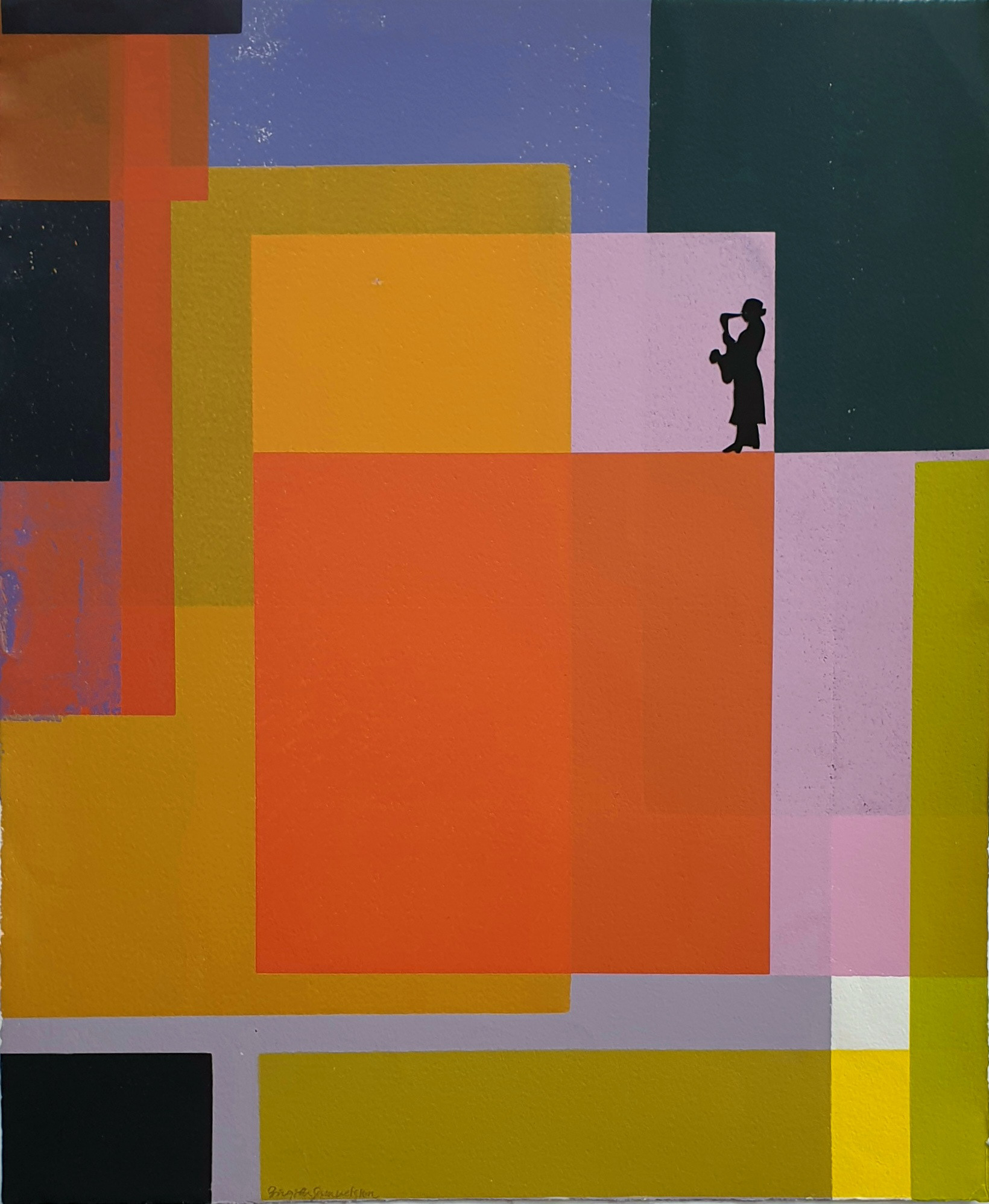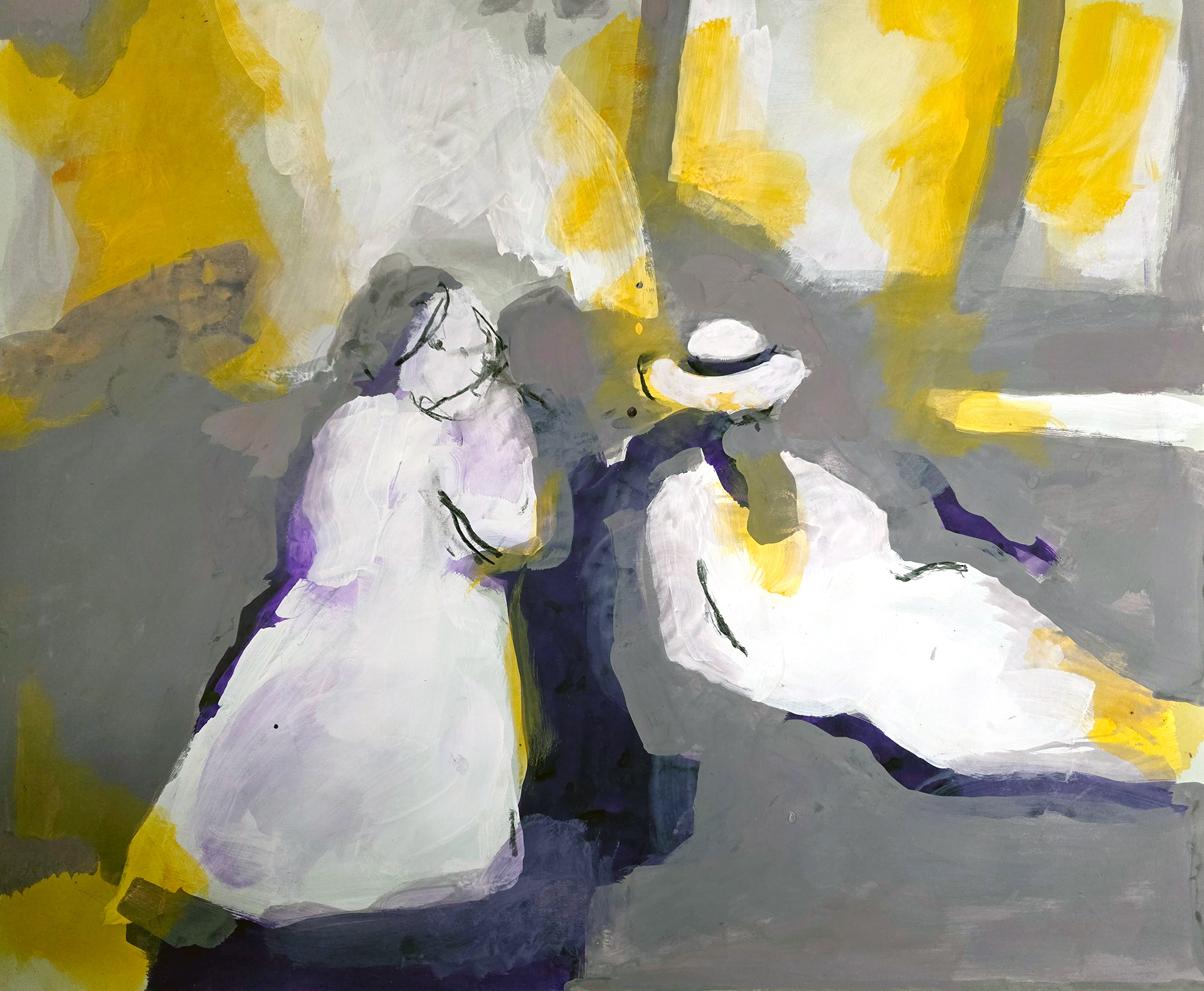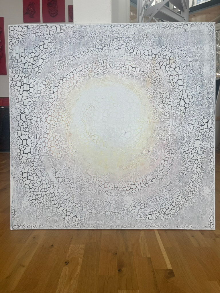 Vid pandemins utbrott fick jag diagnos obotlig cancer och kunde inte genomföra mina stipendieresor till Japan, Paris och Capri. Det fick bli resor i fantasin och ett 60-tal målningar på temat ”Reseminnen – om jag fått resa”. Jag målade som besatt för att hålla mig vid liv. Begränsad av karantän behövde jag hitta nya former, organisera struktur, få balans i livet med nya olika känslomässiga tillstånd. Vattenytas lekfulla rörelser byttes till stramare uttryck.