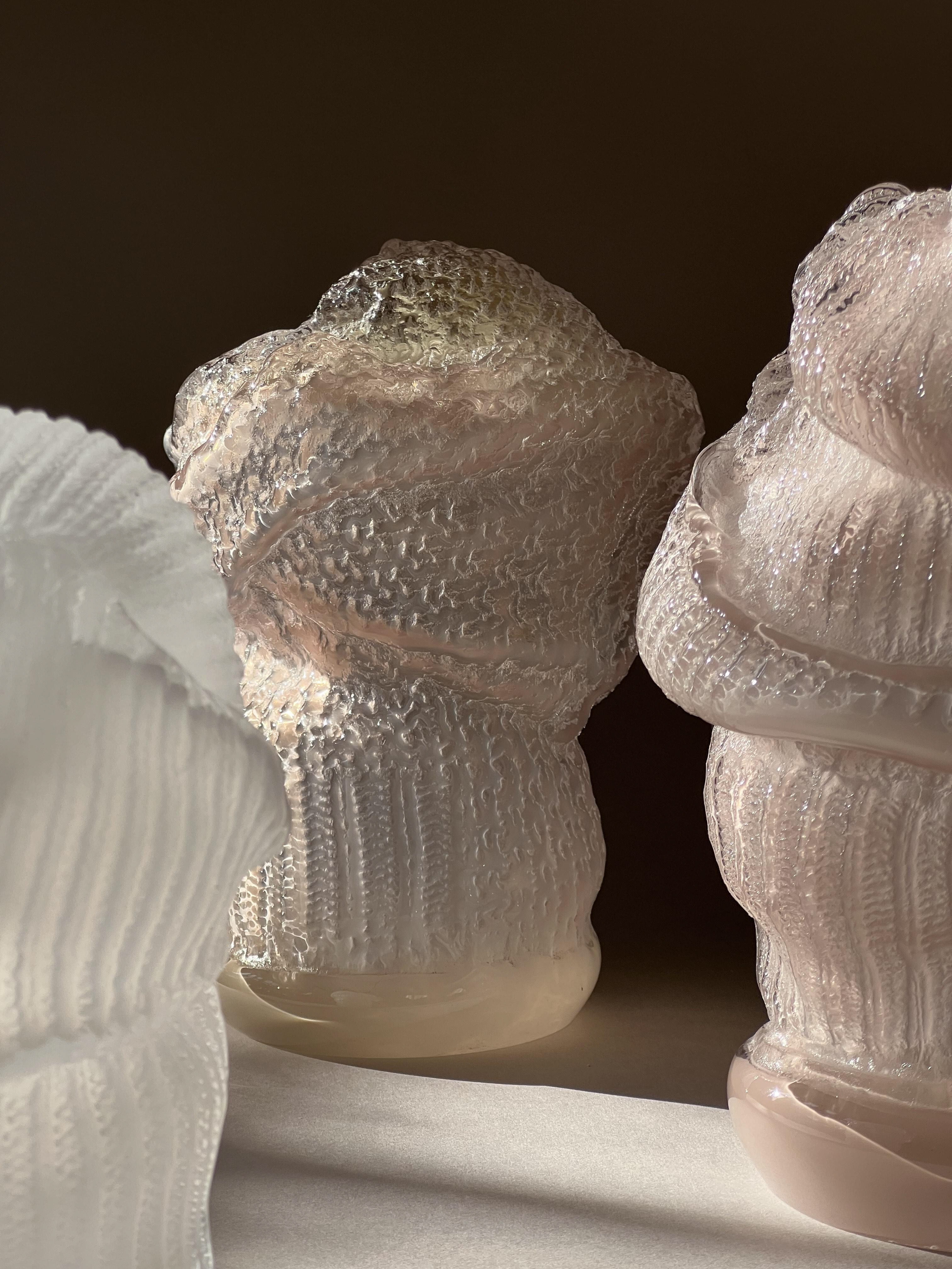 Malin Pierre är född och uppvuxen i Brunflo, Jämtlands län. Hon avslutade nyligen sina studier på Konstfack där hon kvitterade ut en master från programmet Keramik och Glas. Utforskandet av material står i fokus i Malins konstnärskap. Mer specifikt omvandlingen från textil till glas. Denna symbios mellan glasets hårdhet och det mjuka tyget är också tydlig uttrycket hos de färdiga konstverken. Malin tilldelades stipendiumet som ett startkapital för ett begynnande konstnärskap för att möjliggöra tillgången till de ugnar och den utrustning som krävs för att producera konstverk till kommande utställningar.