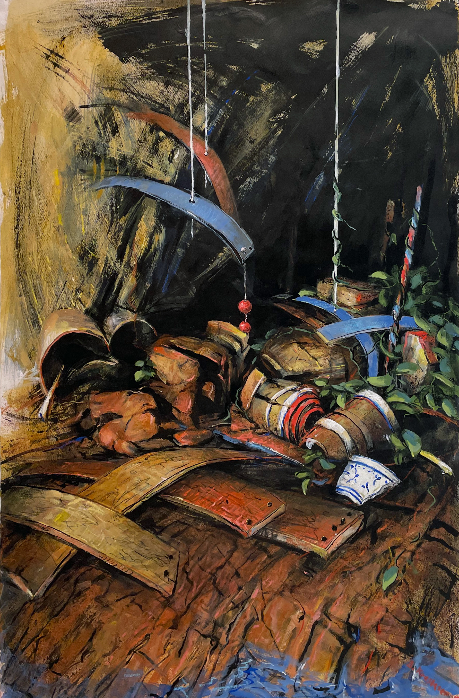 ”Arvet ”utgör en viktig del av min bildvärld. Därför får en till synes simpel skärva eller ett fat en stark laddning. Det blir till en viktig pusselbit då jag bygger mina bilder, men också i mitt försök att förstå min och vår egen historia.